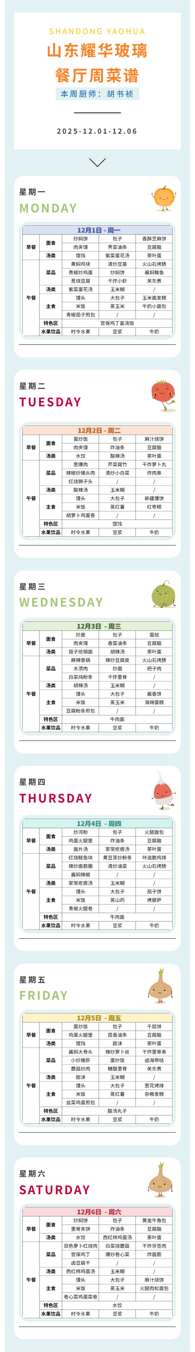 丰富菜品,健康搭配丨山东耀华玻璃餐厅12.01-12.06周食谱