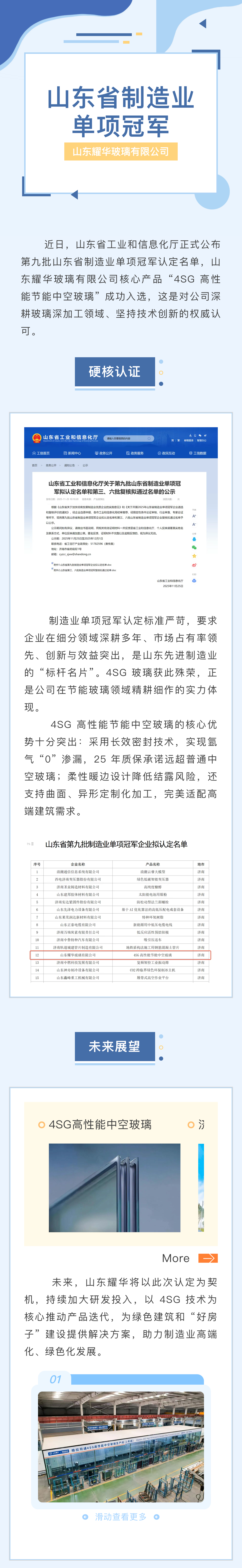 荣誉官宣:山东耀华4SG 玻璃入选省级制造业单项冠军