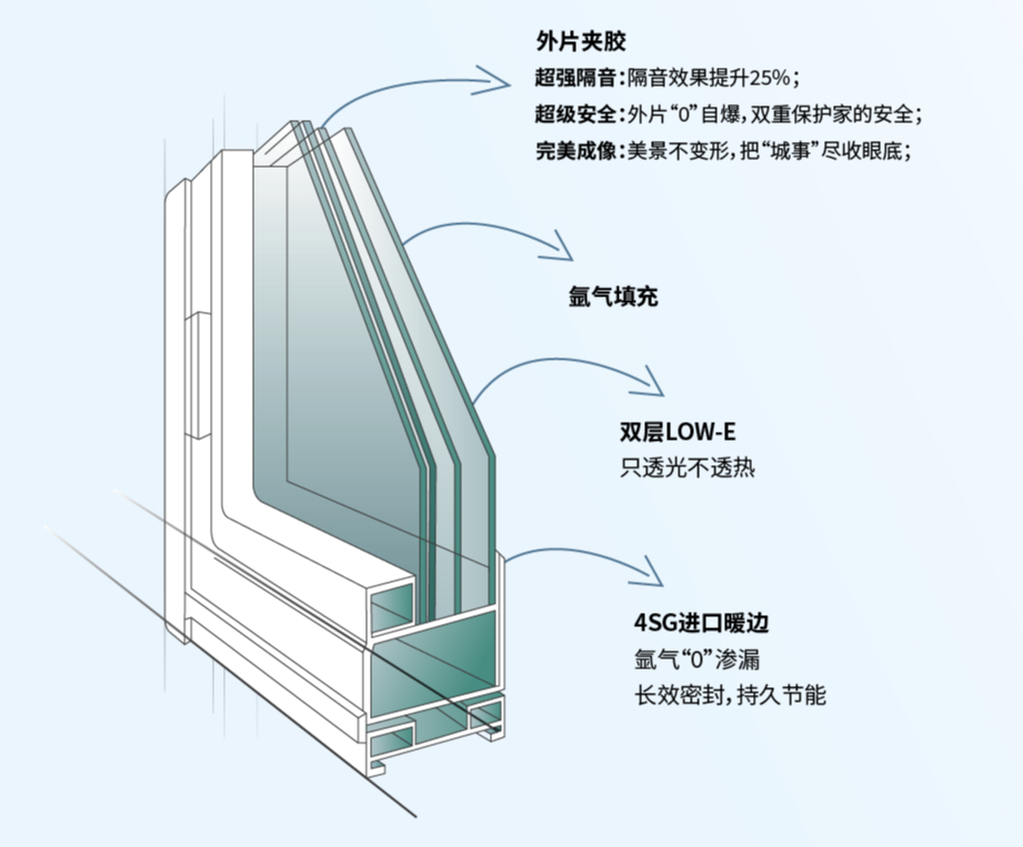 4. 长效密封:4SG专属密封技术,防结露、抗水汽渗透,保障玻璃长期通透洁净,适配住宅长期居住需求。